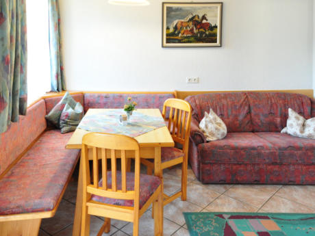 Das Wohnzimmer mit der Essecke und der ausziehbaren
