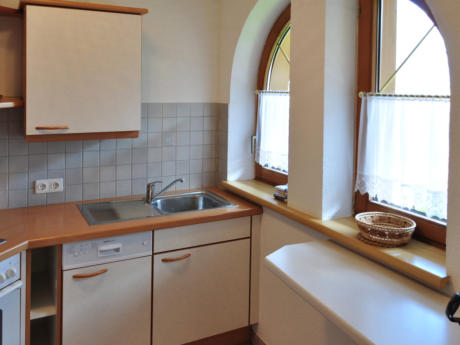 Küche, Wohnraum mit Couch.