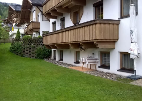 Blick vom Balkon zur Talstation der Bergbahn Hochzillertal